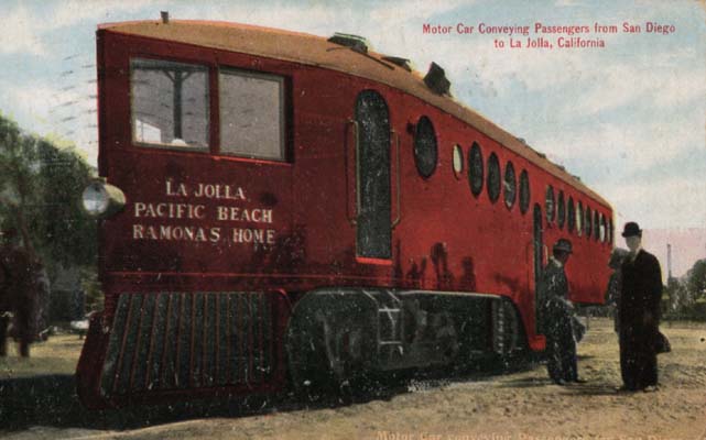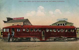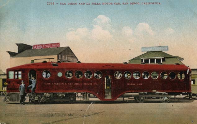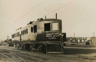 motorcar of the Los Angeles & San Diego Beach Railway in front of the La