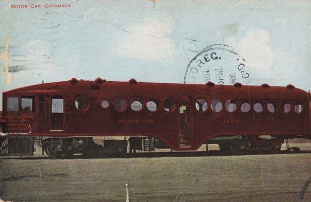 Motorcar "Cuyamaca" going to La Mesa Springs, Lemon Grove, Narragansett, and