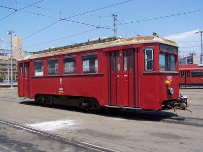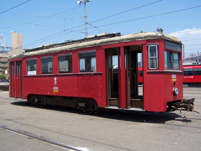 Car NH 6891 sits at the MTS / San Diego Trolley yard in downtown San Diego on